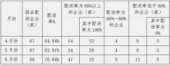 为进一步压实集采(挂网)药品生产企业供应保障的主体责任,确保医疗机构临床使用需求,督促配送企业及时响应医疗机构采购订单,提高配送时效,及时处理医疗机构反映的供应配送问题,对无法及时满足医疗机构采购需求、不按协议供应的医药企业,依据相关管理规定给予相应信用评价,现就关于全省第二季度配送药品情况进行通报如下。